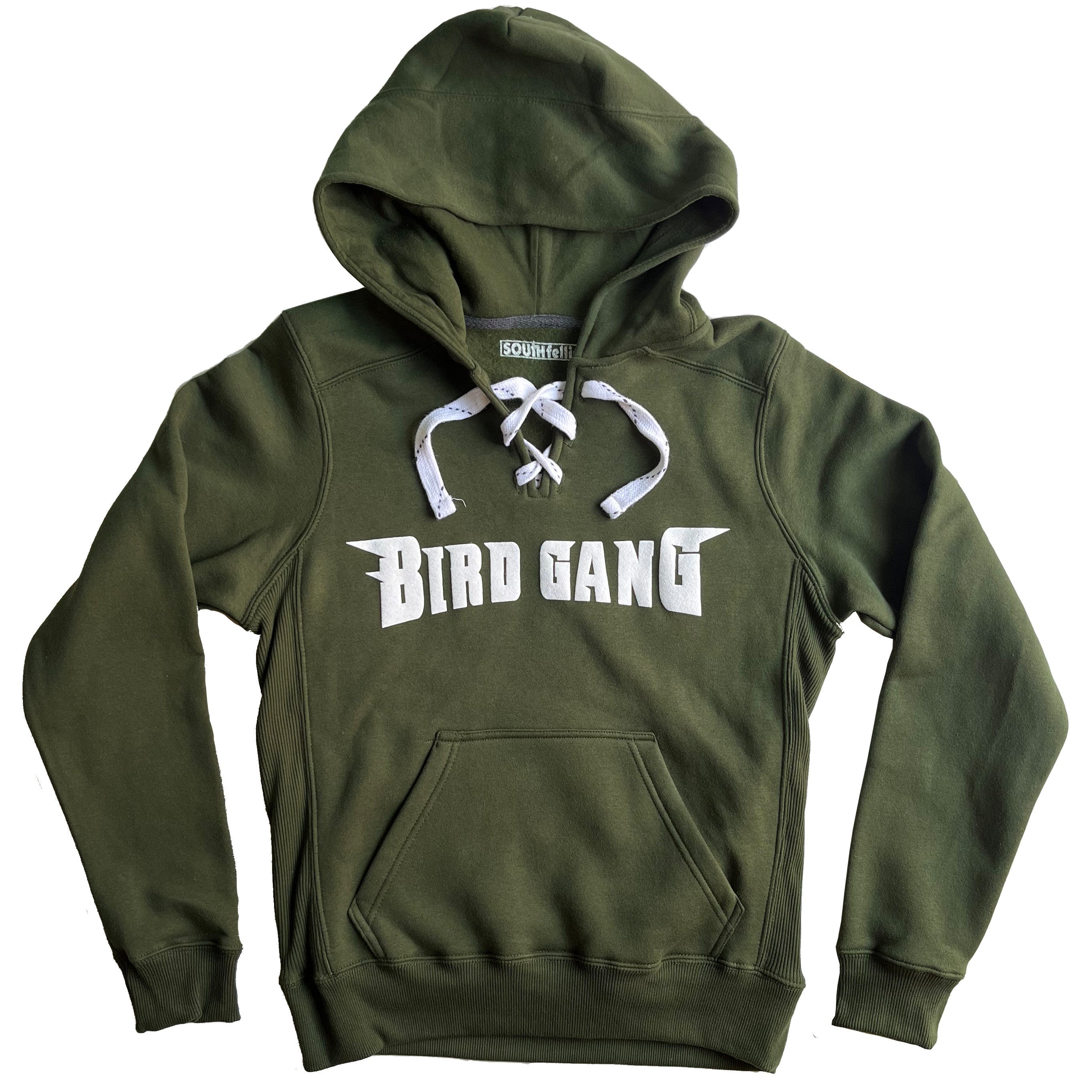 "Bird Gang Puffy Print Lace Up" Green Hoodie